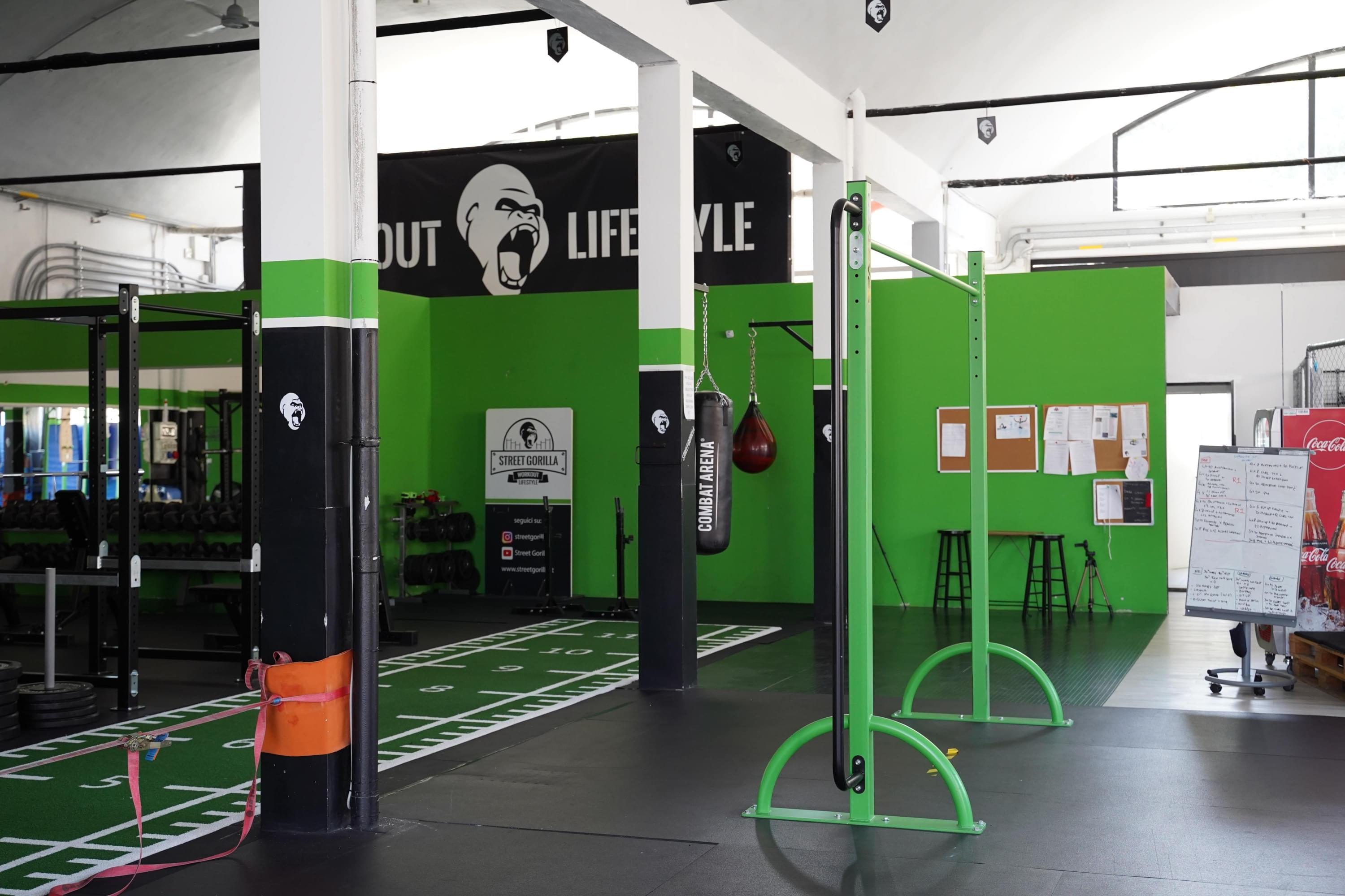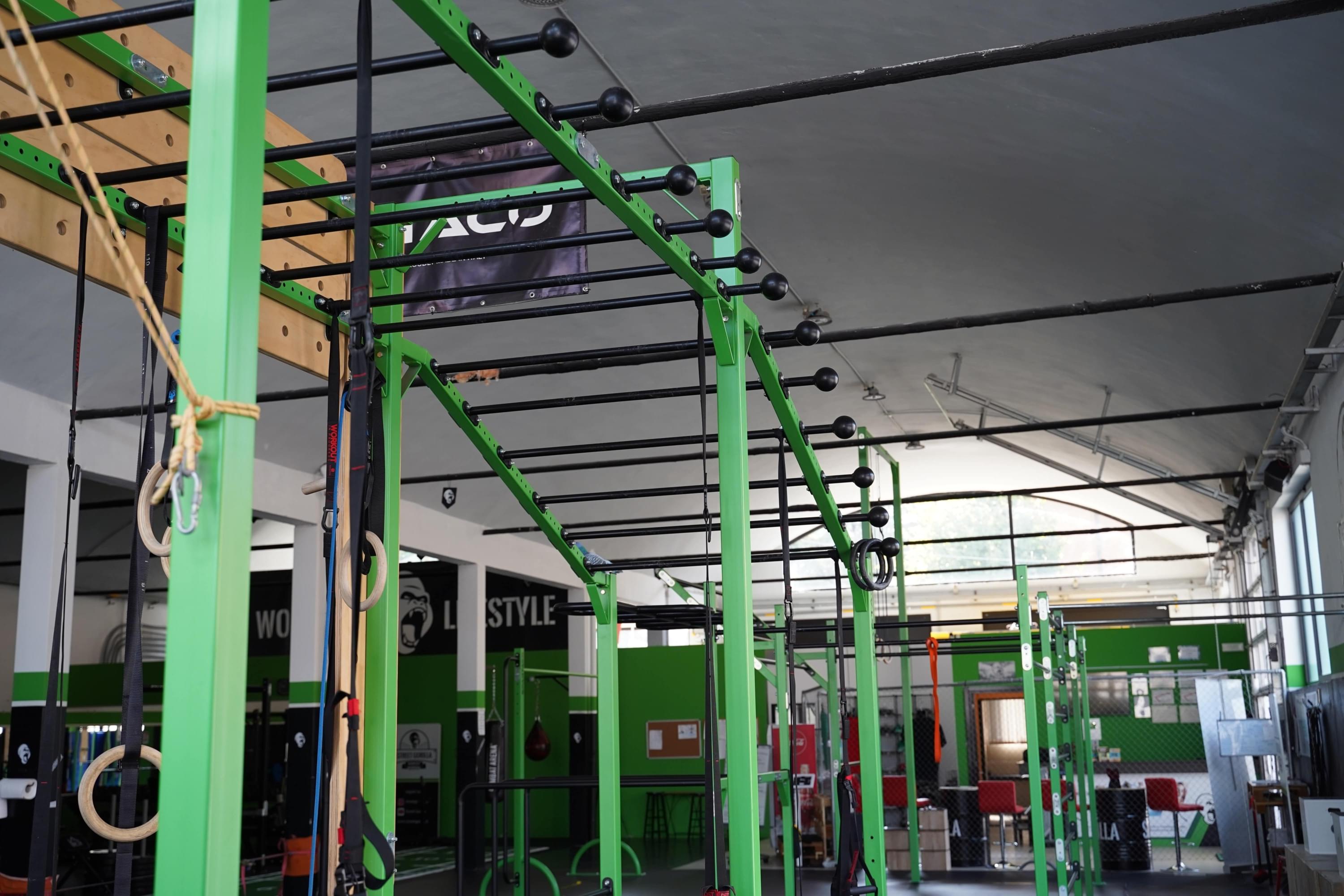 Inizialmente la palestra è nata per il Calisthenics, con vari percorsi, sbarre per trazioni, parallele, anelli e tutto il necessario per allenarsi a corpo libero, come la monkey bar e ninja warrior.